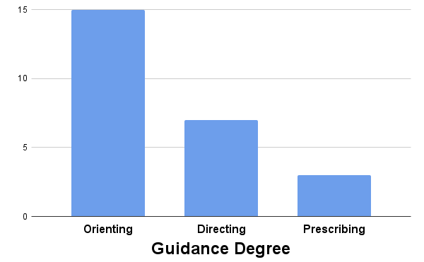 While guidance is infrequently evaluated in detail, most papers that provide guidance rely on less intrusive orienting guidance. Note: Papers can employ multiple guidance degrees.