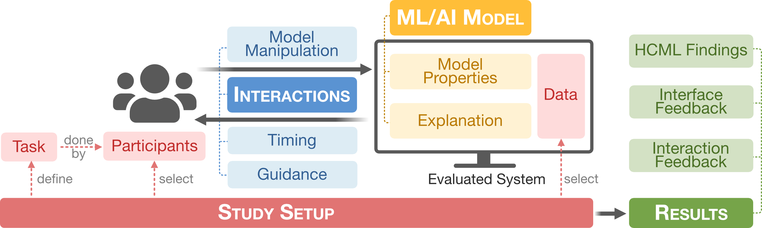 Below, we summarize the findings for each of the four aspects study setup, model and explanations, interactions, and reported results. Many more details can be found in the paper.Study Setup